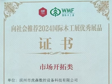 2024年9月11日-14日,CIFF上海WMF國際木工展在上海虹橋國家會展中心盛大開幕。濱州虎森數(shù)控設(shè)備科技有限公司出席參加了此次展會,憑借卓越的產(chǎn)品實(shí)力和創(chuàng)新精神,在眾多參展企業(yè)中脫穎而出,榮獲優(yōu)秀展品證書。